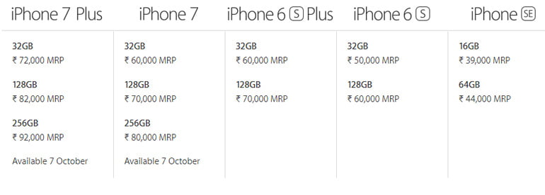 Going from lowest variant/price to highest, the Apple iPhone 7 32GB storage variant will come with a price tag of Rs 60,000. While the iPhone 7 128GB storage variant is priced at Rs 70,000 and the 256GB variant is priced at Rs 80,000.