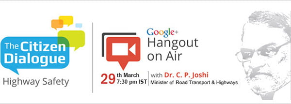 Following the path of his colleague and Union Finance Minister P Chidambaram recent live interaction with citizen’s on Google+ hangout, Dr. CP Joshi will interact live with people and take their suggestions on highways safety. This live interaction is an extension of the Ministry’s IT initiatives to connect with people of the country. Ministry of Road Transport and Highways will be organizing this Citizen Dialogue on experimental basis to make Highways Safety an all-inclusive mission.